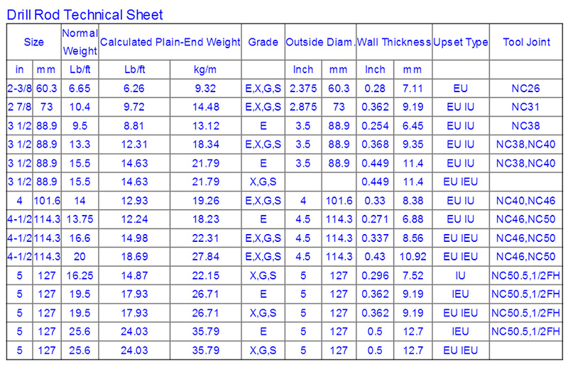 鉆桿材料包括無縫鋼管、無焊件、碳化鎢、低錳碳酸鹽以及定制材料。